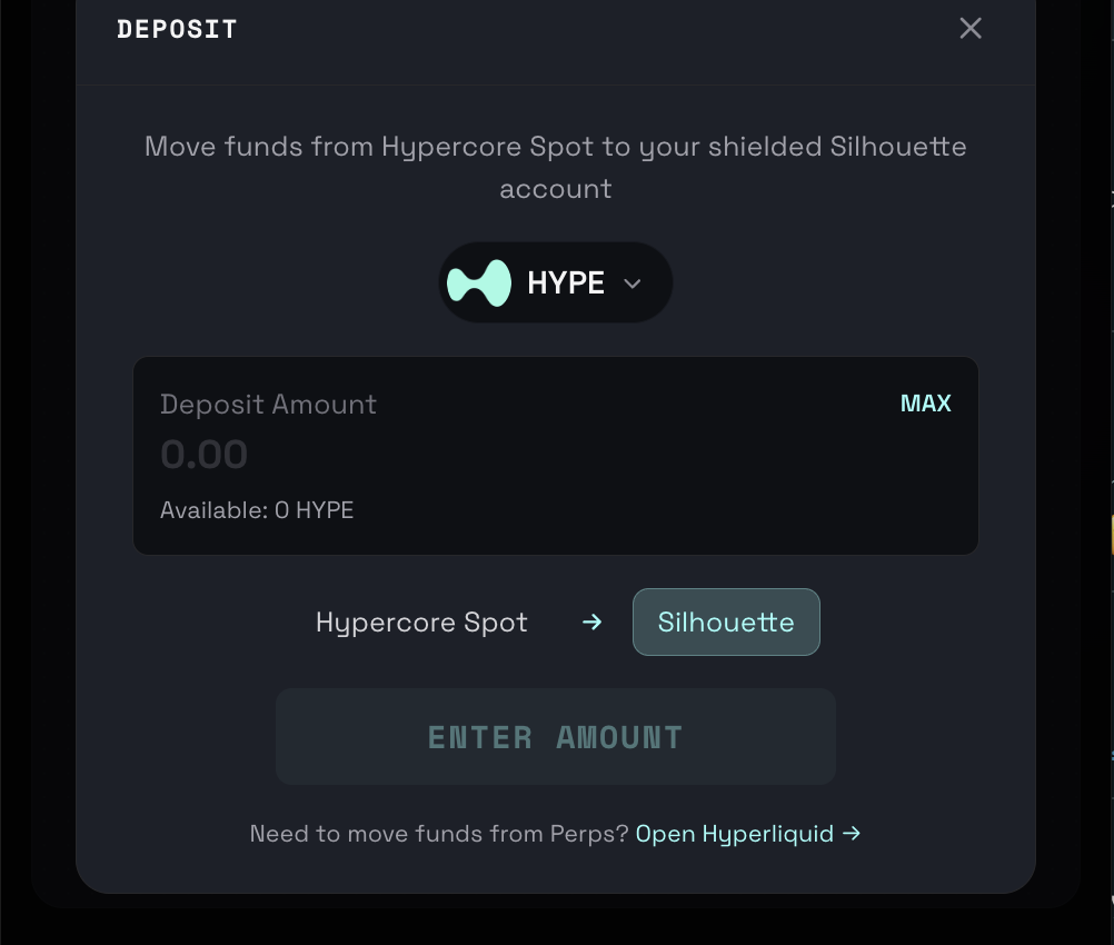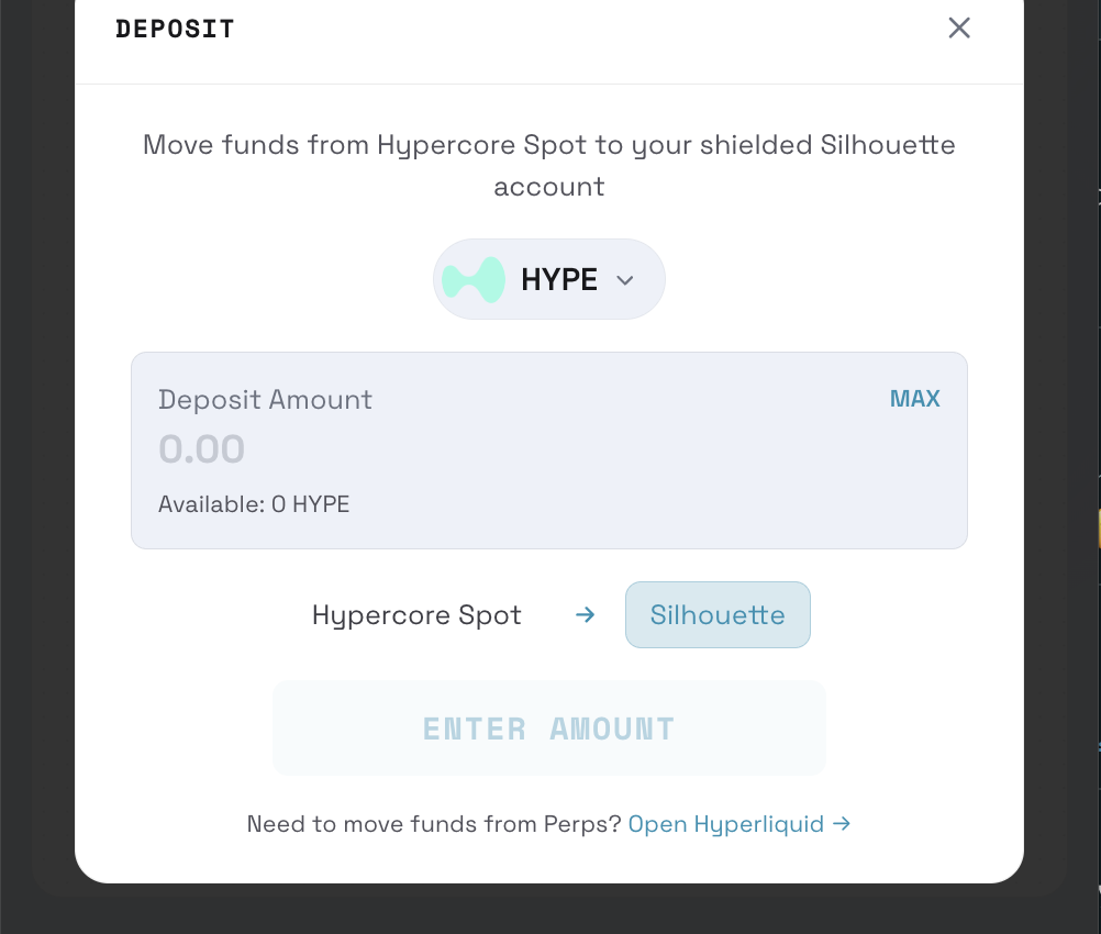 Before swapping, you need to deposit funds into your Silhouette shielded balance.
